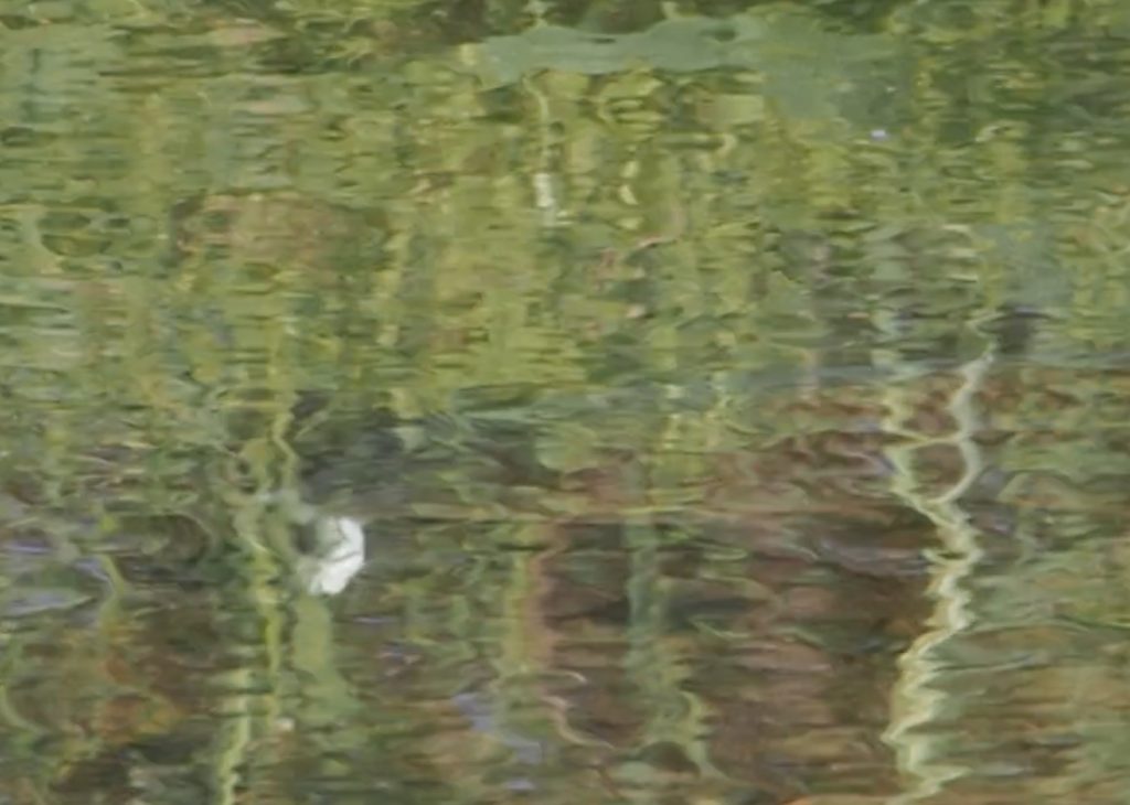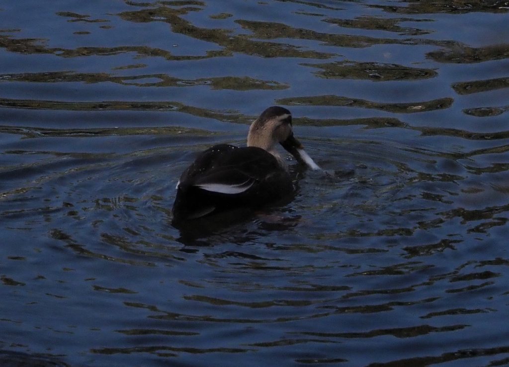 慌ててカメラのレンズを向けましたが、撮影できたのはこの状態のみ。ですがこのカルガモは深さ60㎝ほどある場所で潜水をして、このアユを川底からくわえ上げました。1.8秒ほどは完全に潜った状態でした。カルガモもアユを食べるのですね。