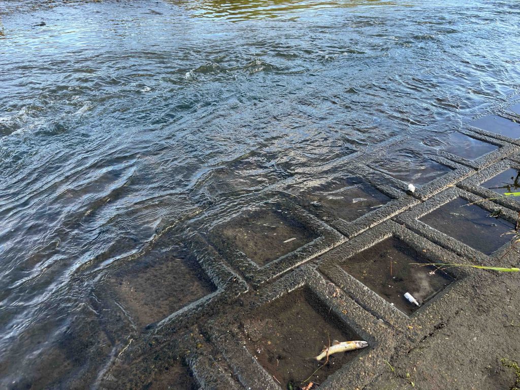 で、流れ下ったアユを見ていると、今度はコイがスパスパと食べ始めたのです。
