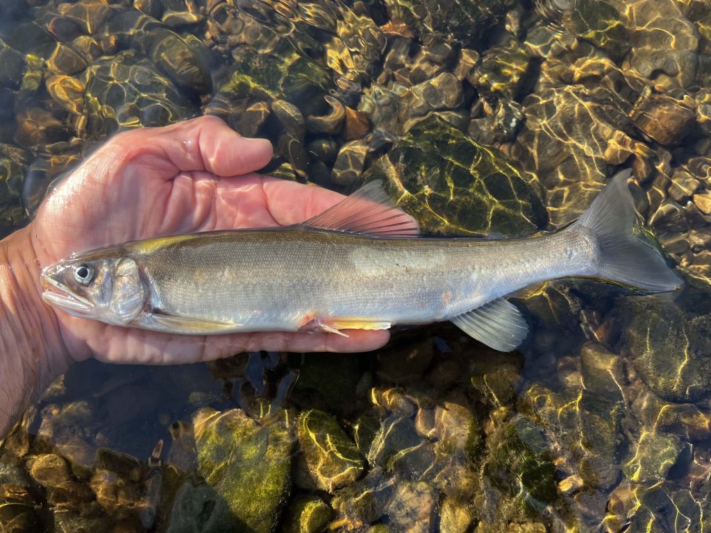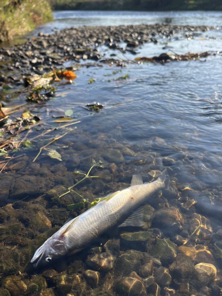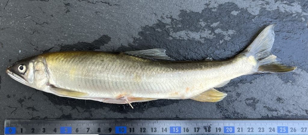 この川ではなかなか目にすることのない。大ぶりのメスでした。しかもフレッシュ。死んだばかりという感じ。外傷はほぼなし。一箇所だけ体側に小さな穴が空いていました。冷水病でしょうか・・。