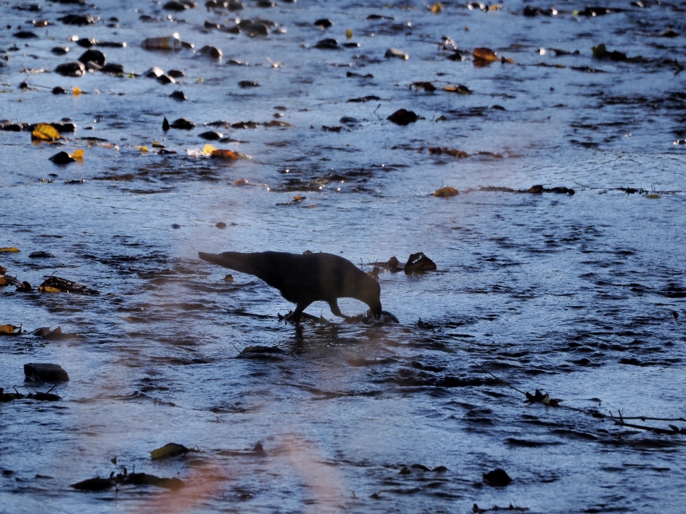 なじみと言えば、片足の欠けたハシボソガラスは、もう4年半ほどこの川にいて、たびたびその姿を観察している。これはまた別のカラス。キジバトを食べていた。片足のカラスは、もうしばらく見ていない。
